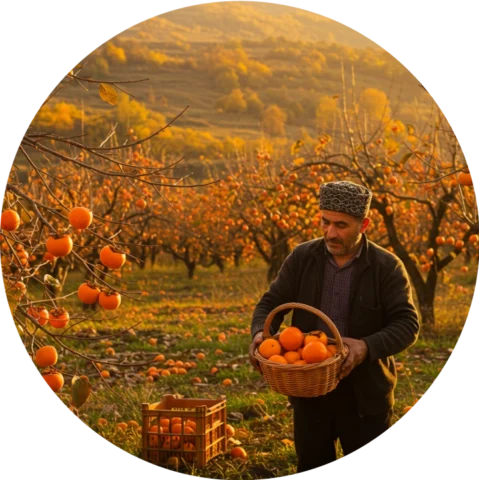 Təzə xurmayı meyvələri payızın ortalarında əl ilə yığılır.